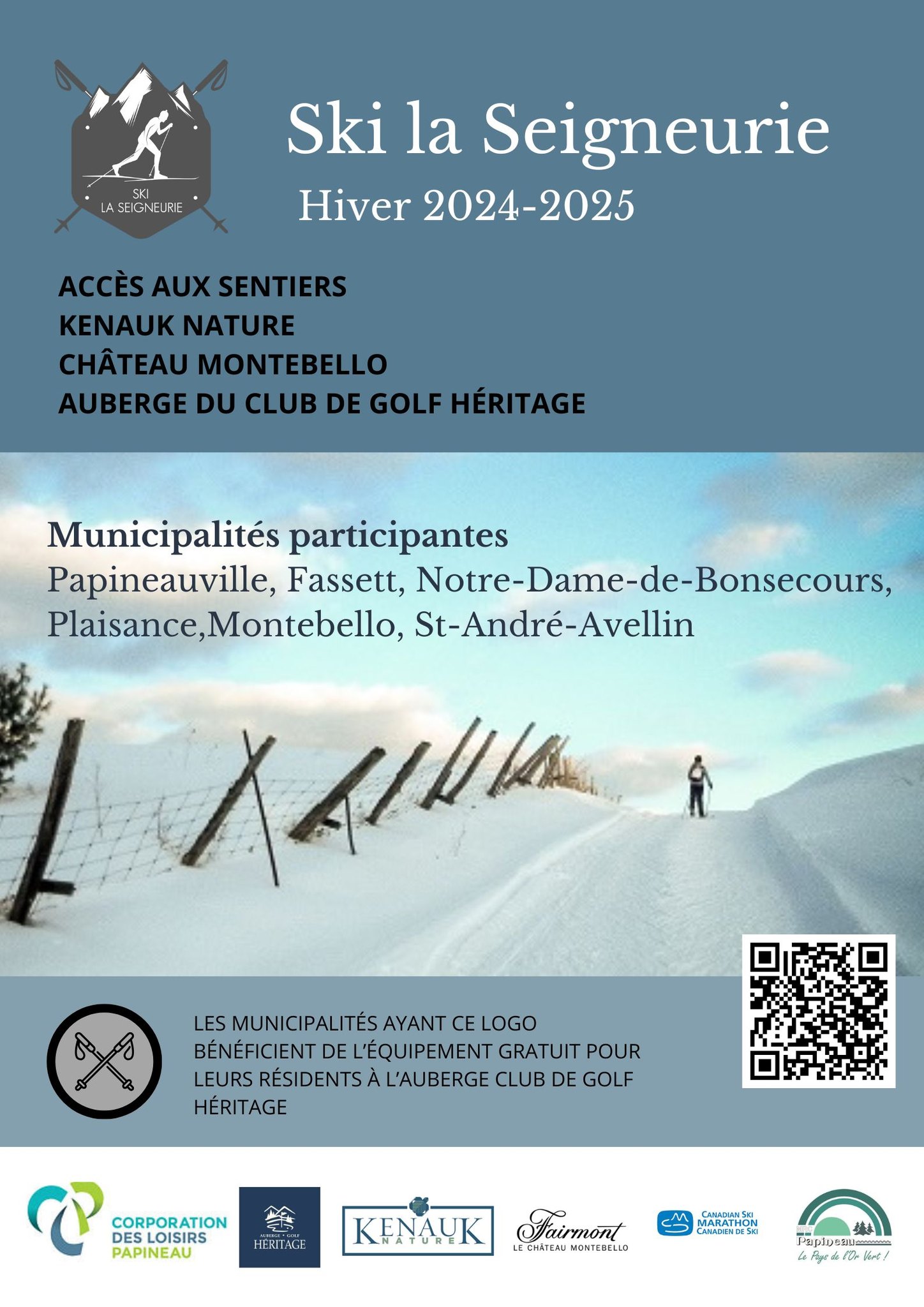 Ski La Seigneurie est un projet de partenariat orchestré par la Corporation des loisirs de Papineau entre diverses municipalités, Fairmont Le Château Montebello, Kenauk Nature et l’ Auberge Club de Golf Héritage.