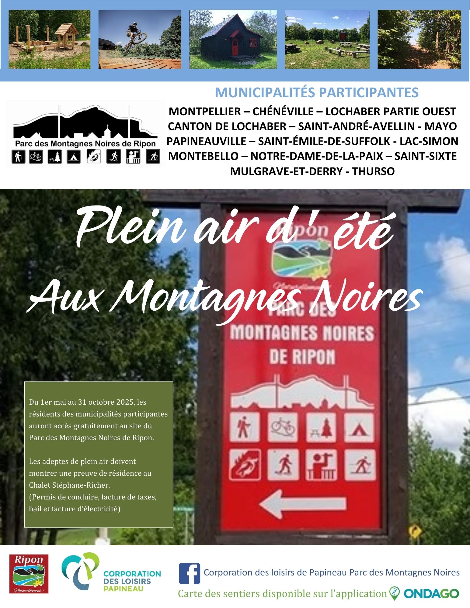 À nouveau, la Corporation des loisirs de Papineau et la Municipalité de Ripon s'unissent pour offrir la gratuité aux résidents des municipalités participantes de la MRC de Papineau.